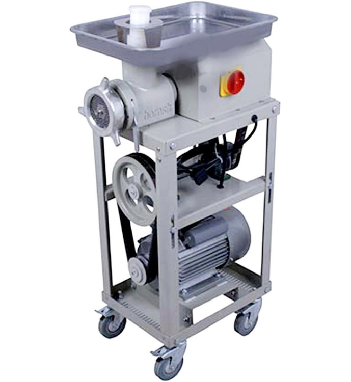 - چرخ گوشت تسمه ای با گلویی متحرک و قابلیت چرخ کردن ۳۰۰ کیلوگرم گوشت در ساعت دارد
