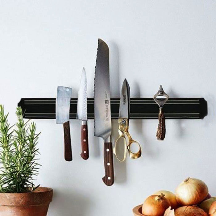 این نوع مگنت استفاده های بسیار دارد، از جمله برای نگهداری و دردسترس بودن بیشتر لوازم خیاطی،نجاری،سایر لوازم خانه و همچنین در آشپزخانه نیز قابل استفاده می باشد برای مثال: نگهدارنده چاقو به شما این امکان را می دهد که وقتی شما طبخ می کنید همه چاقوی های مختلف خود را ببینید و به آنها دسترسی داشته باشید و لبه های چاقو همیشه سالم باقی میماند زیرا دیگر داخل کشو به دیگر وسایل برخورد نمیکنند و یک ظاهر زیبا به آشپزخانه میبخشد. این کالا دارای دو عدد میخ و دو عدد رولپلاک است. همچنین ساخت کشور چین می باشد.