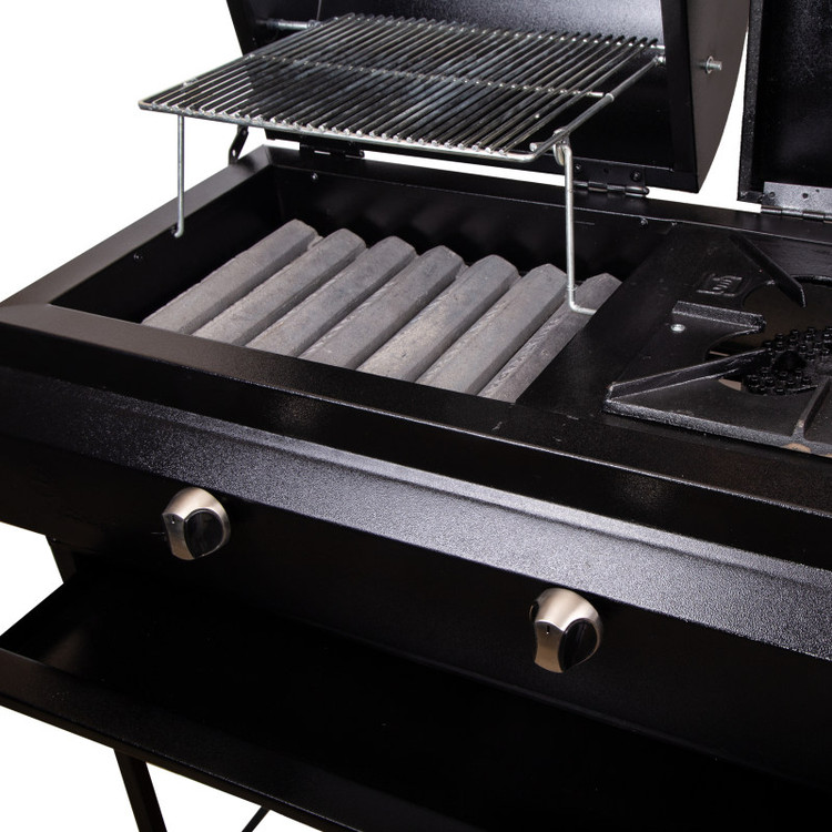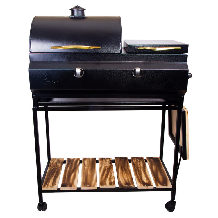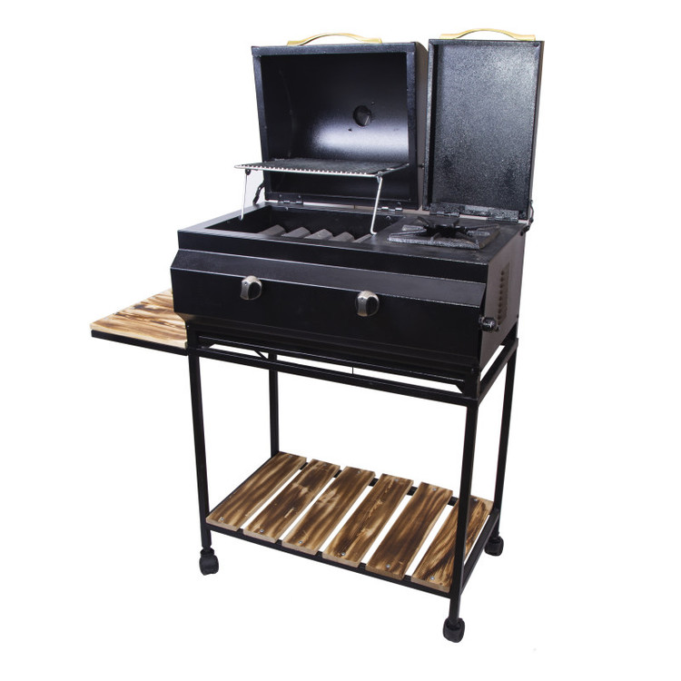 این باربیکیو در منازل و فضای باغ یا آلاچیق کاربرد بسیار زیادی دارد. این باربیکیو با عرض 80 سانتی متر که شامل 50 سانتی متر کباب پز و 30 سانتی مترپلوپز میباشد میتواند پاسخگوی نیاز شما جهت هرگونه پخت و پز کباب استیک برگر و همچنین سرخ کردن و... در منزل و فضای باغ یا آلاچیق شما باشد و با توجه به دارا بودن پلو پز نیازی به استفاده از اجاق های اضافی دیگر ندارید.در قسمت باربیکیو روی هر مشعل یک عدد ناودانی چدنی تعبیه شده که باعث پخت مطلوب تر کباب و جلوگیری از سوختن ان میشود(شعله غیر مستقیم). از مزایای دیگر این باربیکیو رنگ ضد زنگ و ضد رطوبت بوده و همچنین میز روی پایه برای قرار دادن زغال انبر کفگیر و چرخ زیر پایه برای حمل و نقل راحت است. همچنین لازم به ذکر است این باربیکیو از پایه جدا بوده و به سادگی میتوان در خودروی شخصی به همراه پایه جای داد. همچنین این باربیکیو دارای سینی چکه گیر، درب گرد و درب مسطح، میز چوبی تاشو، طبقه مجزا جهت گریل، ناودانی چدنی برای هر لوله جهت شعله غیر مستقیم و چرخ جهت جا به جایی می باشد.