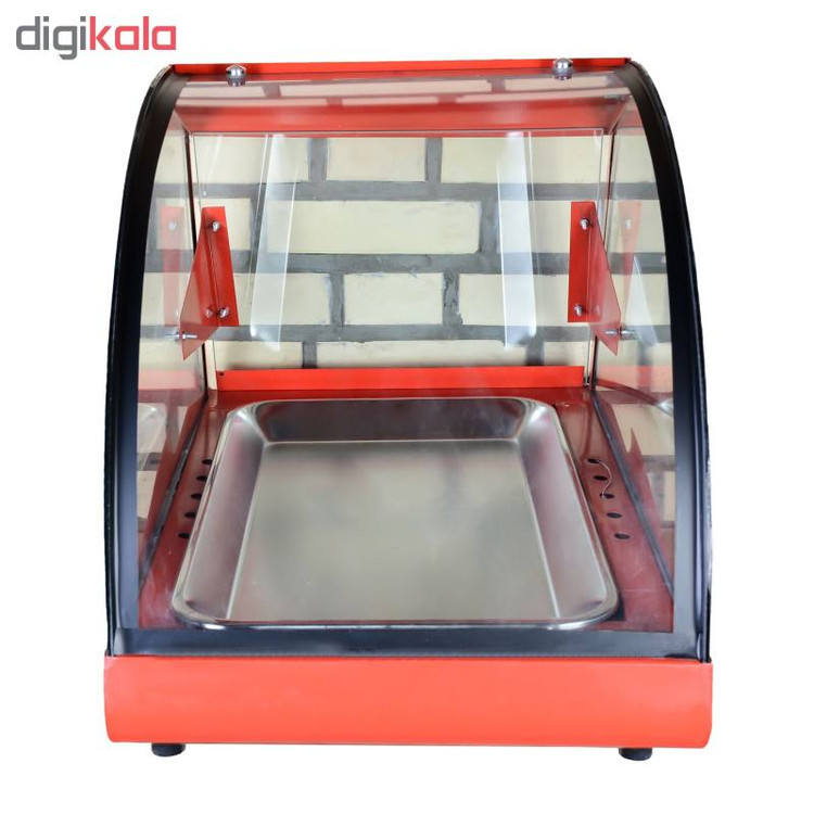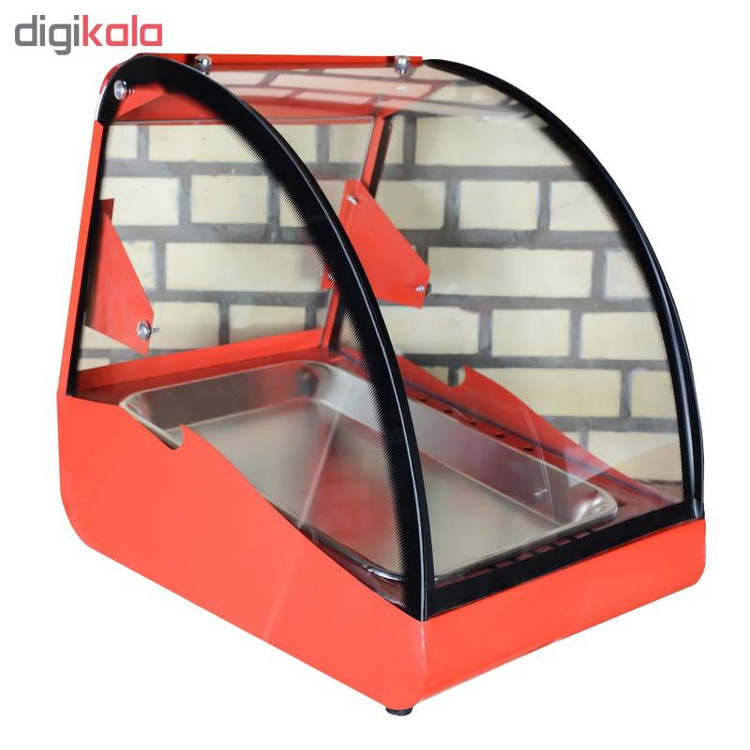 گرمکن تک سینی ویترینی رومیزی جلو شیشه دار مناسب سمبوسه پیراشکی در فست فود و نان فانتزی و شیرینی فروشی که برقی بوده و گرمخانه ای مناسب برای قرار گرفتن در ویترین شما می باشد. گرمکن ویترینی تک سینی مناسب برای سمبوسه پیراشکی شیرینی و انواع غذاها می باشد. گرم کن برقی قرمز رنگ برای گرم ماندن غذا و نان و هر چیزی مخصوص بوفه وفست فود رومیزی جلو شیشه دار مصرف میگردد گرمکن شیشه خم پیراشکی دارای یک سینی استیل میباشد
