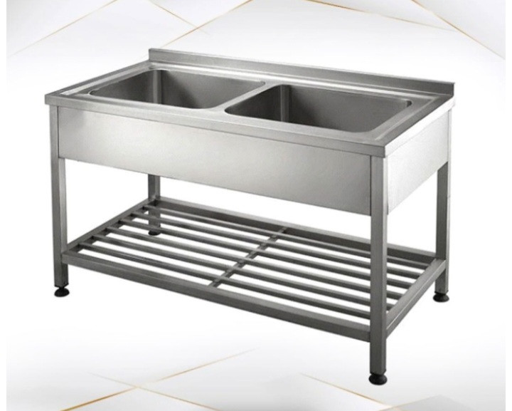 سینک دو لگنه سایز 120 سانتی صنعتی پرسی با ورق یک میل با پایه