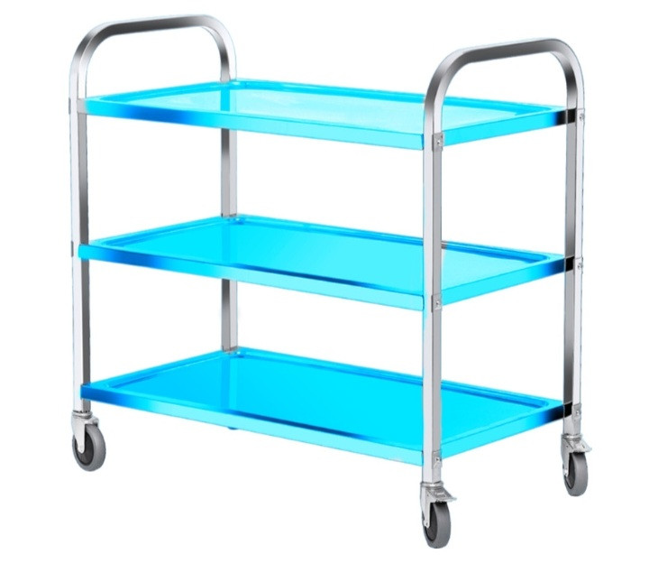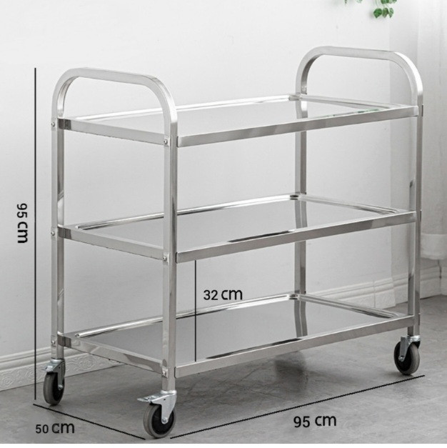 جنس بدنه این ترولی کاملا از استیل استنلس می باشد.وزن کل ترولی استیل ۱۳ کیلو گرم می باشد.ابعاد ترولی ۳ طبقه : ۹۵ طول * ۵۰ عرض * ۹۵ ارتفاع ( ابعاد به سانتیمتر ) می باشدترولی حمل ظروف با جنس استنلس استیل جزء تجهیزات آماده سازی و سلف سرویس می باشد ودر آشپزخانه های صنعتی بیشتر در تالار ها ی پذیرایی و رستوران های بزرگ استفاده می شود.در هتل ها، رستوران ها، تالارها،بیمارستان ها، ادارها و سازمان ها و موارد مشابه جهت پذیرایی و یا جمع آوری ظروف و یا حمل مواد دارویی و بهداشتی مورد استفاده قرار می گیرد